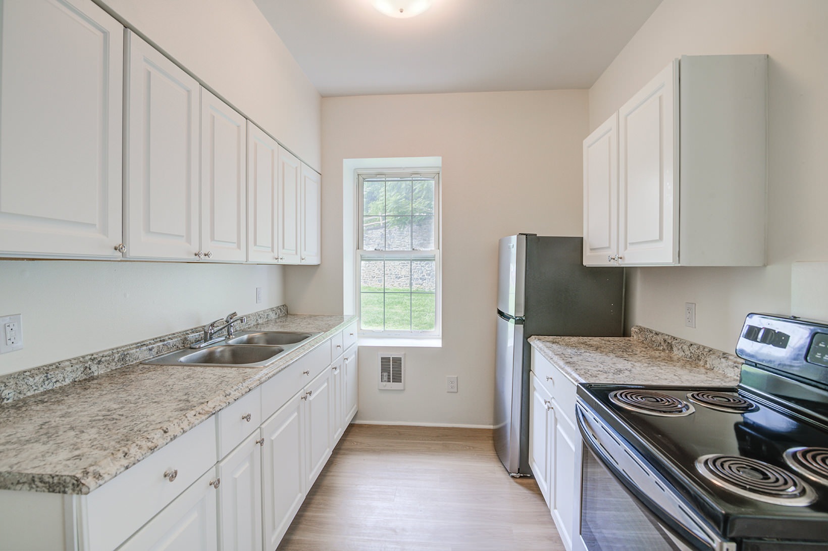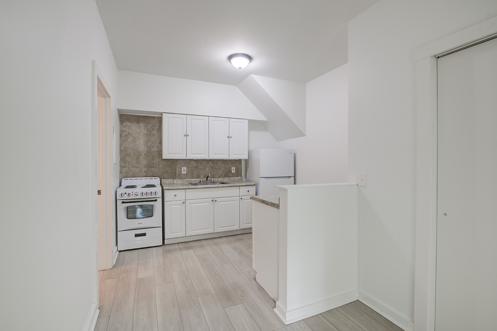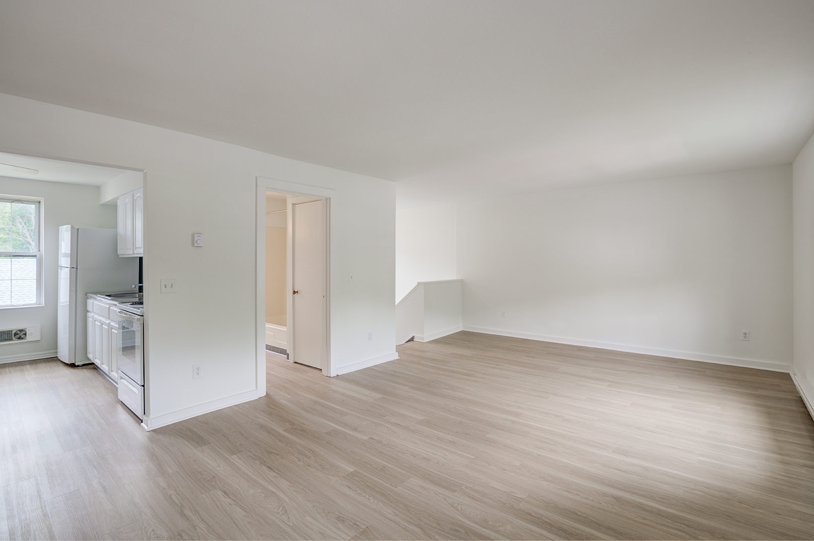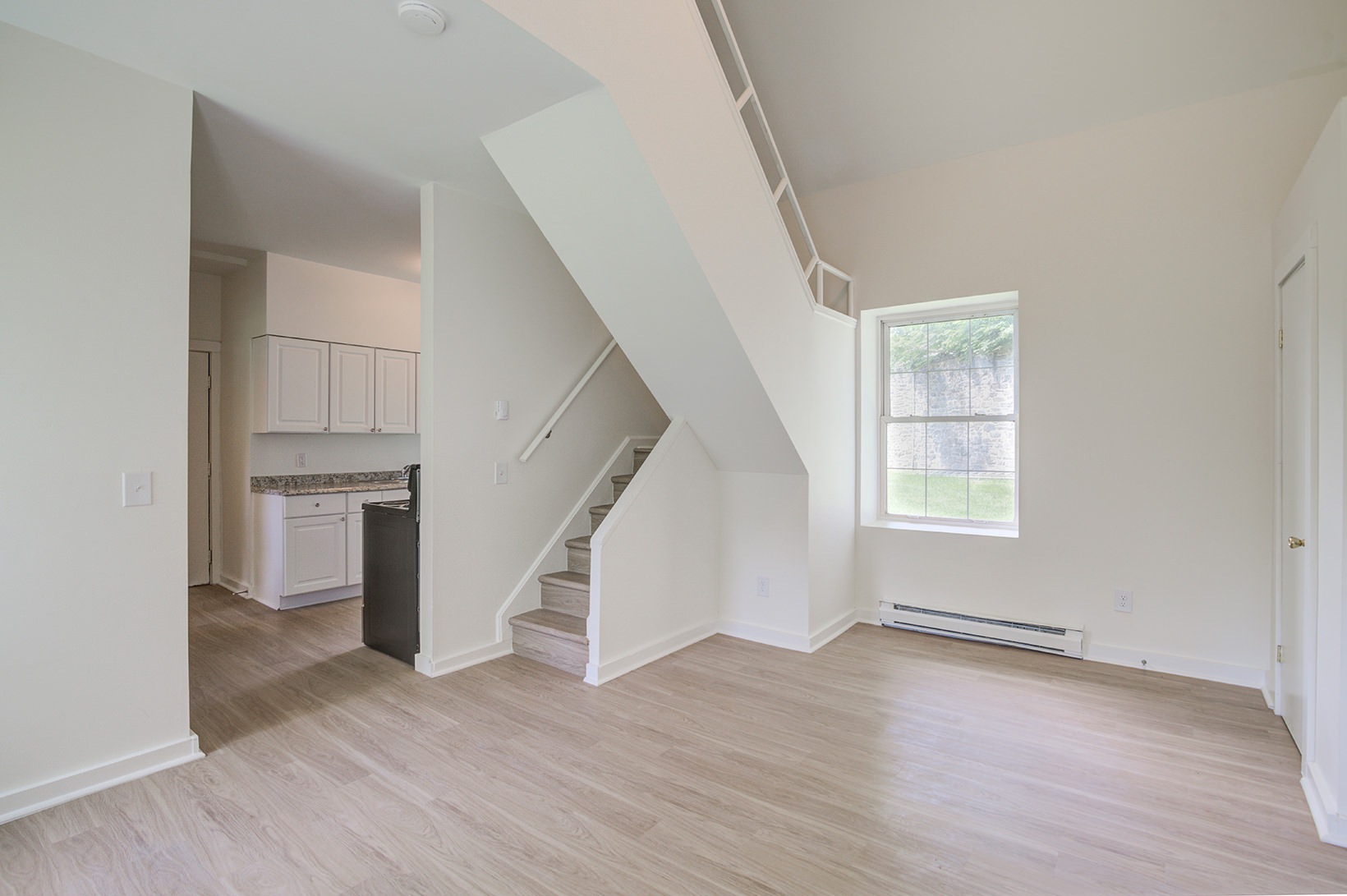 • large, naturally lit living room on second floor adjacent to kitcjen